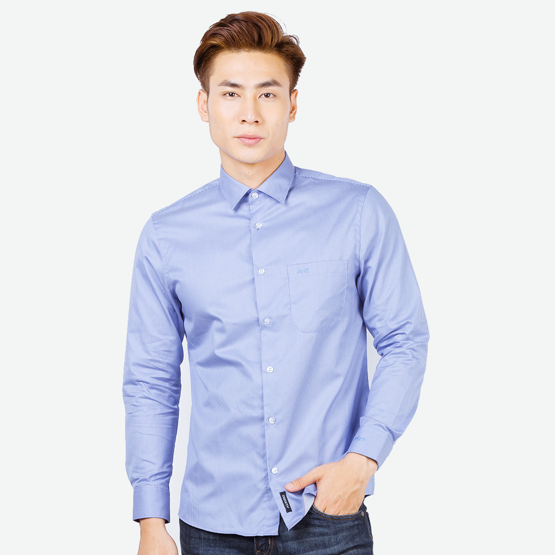 + Áo sơ mi phom dáng Slimfit ôm nhẹ cơ thể, giúp tôn lên vóc dáng gọn gàng nhưng vẫn đảm bảo sự thoải mái khi mặc.
