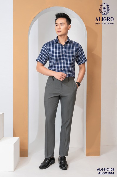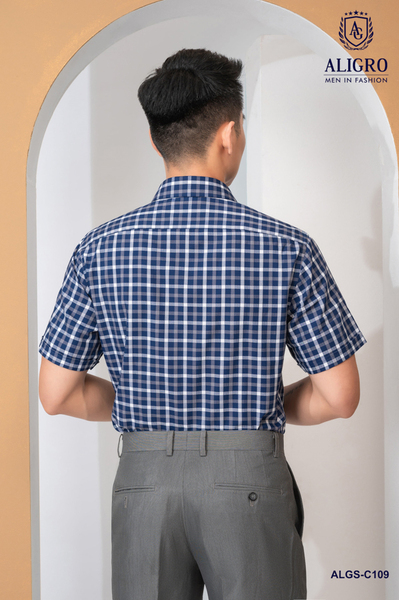 Áo sơ mi nam ngắn tay cao cấp Aligro ALGS-C109 chất liệu vải bamboo form SLIMFIT kẻ ô vuông