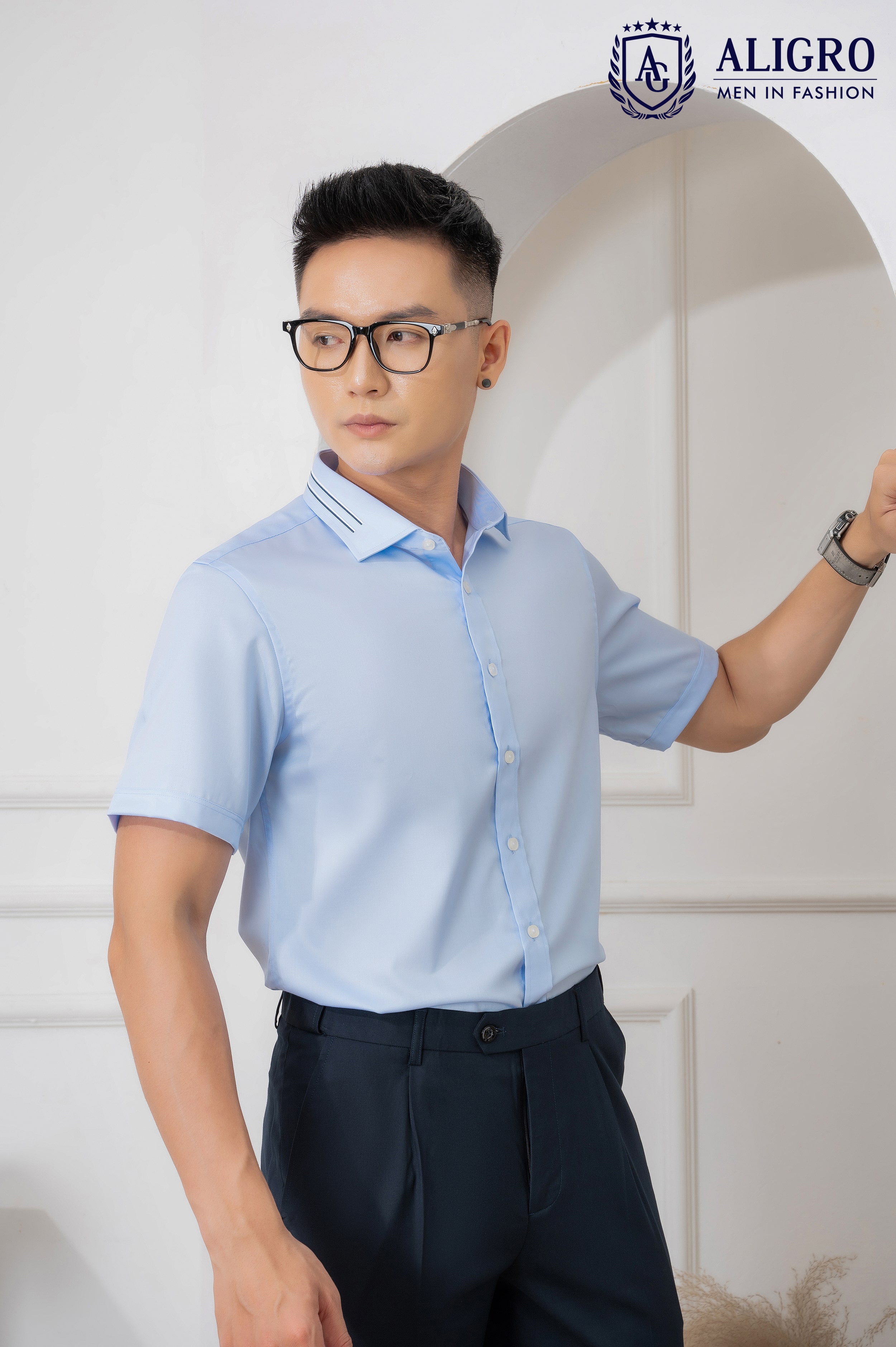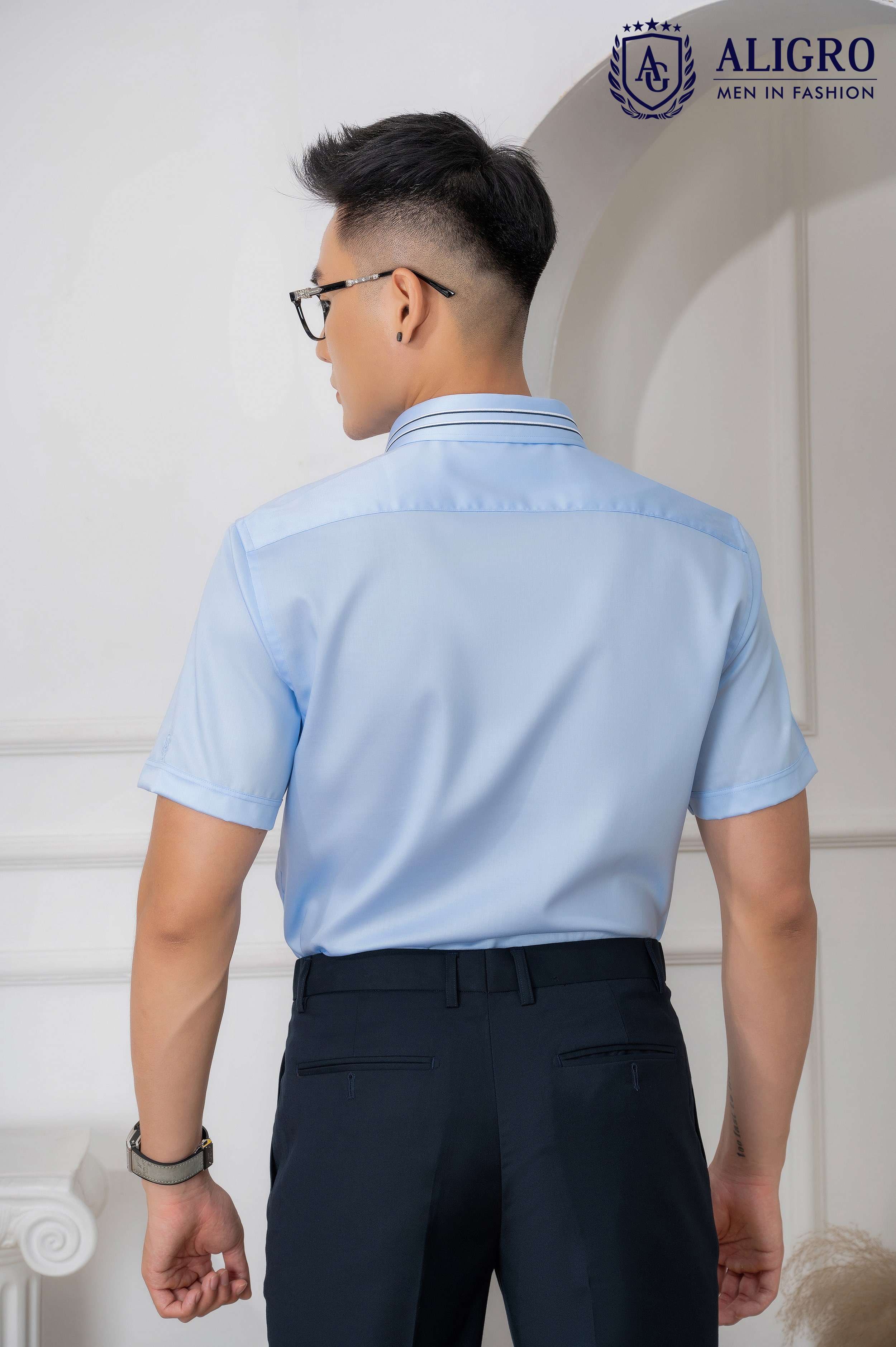 Áo sơ mi nam ngắn tay cao cấp Aligro ALGS-C111 chất liệu cotton chống nhăn form SLIMFIT màu blue