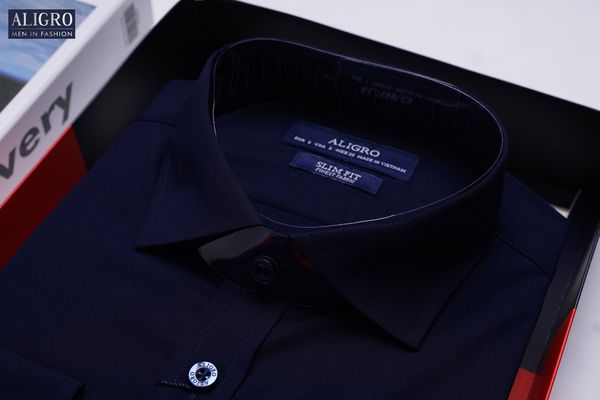 Áo sơ mi nam ngắn tay cao cấp Aligro ALGS-C80 vải bamboo chống nhăn form SLIMFIT màu navy