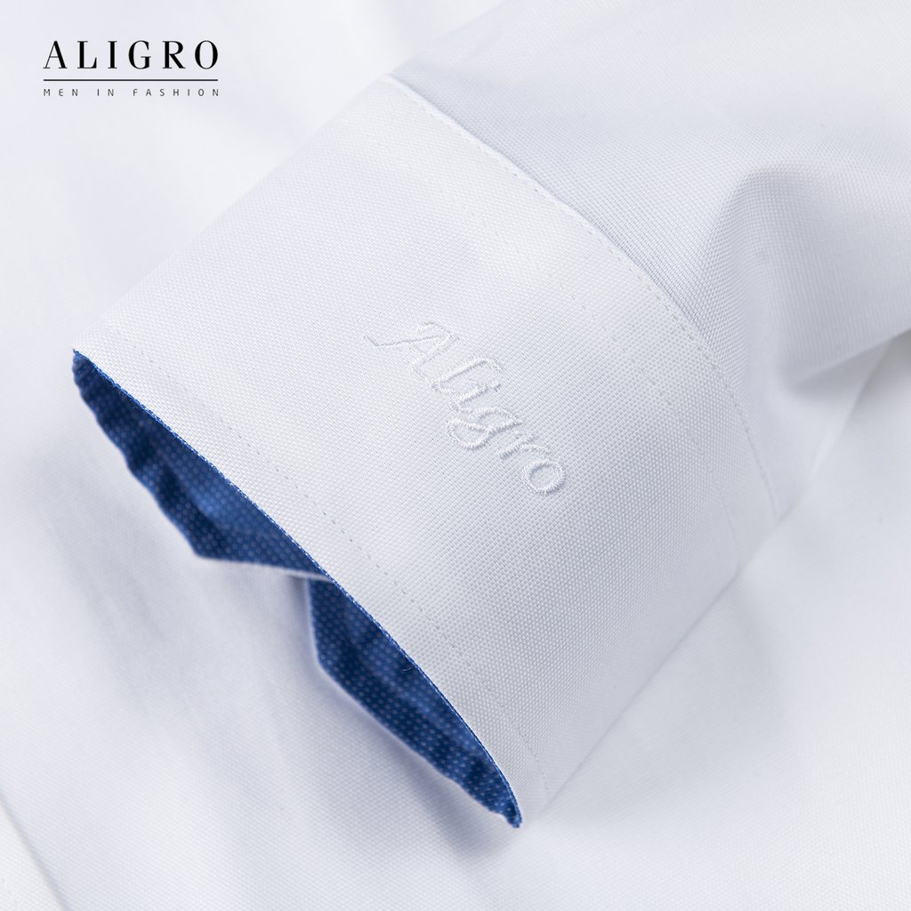 Áo sơ mi dài tay công sở cao cấp Aligro ALGS190 dáng Slimfit màu trắng phối cổ tay