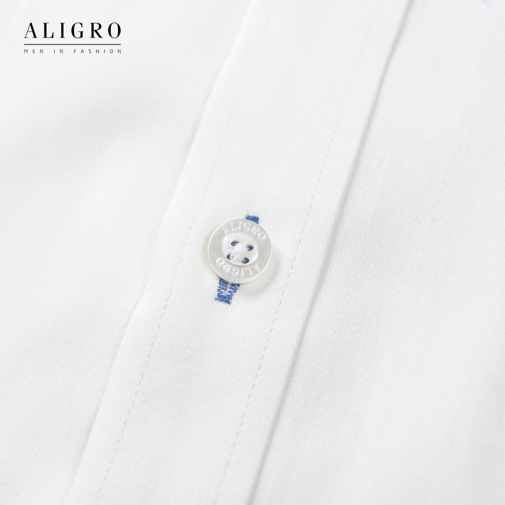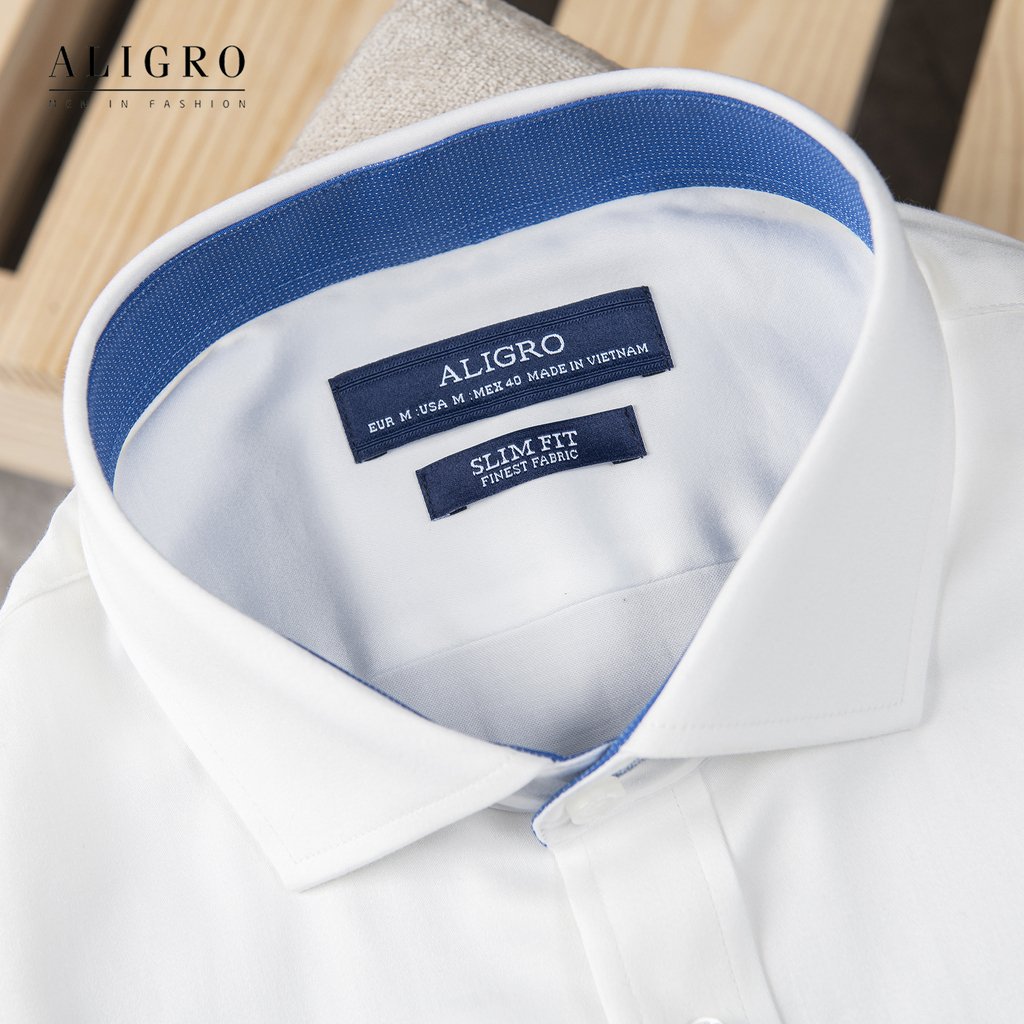 Áo sơ mi dài tay công sở cao cấp Aligro ALGS194 dáng Slimfit màu trắng phối cổ xanh
