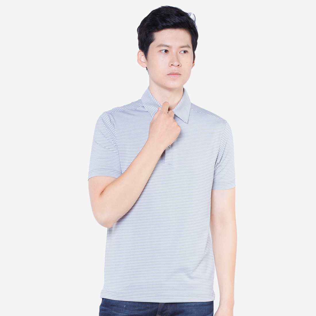 Áo polo nam ngắn tay cao cấp Aligro ALGAPC012 chất liệu vải coolmax form SLIMFIT kẻ ngang màu trắng