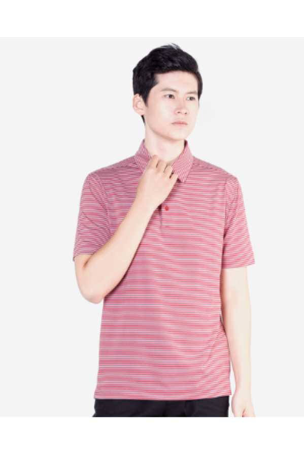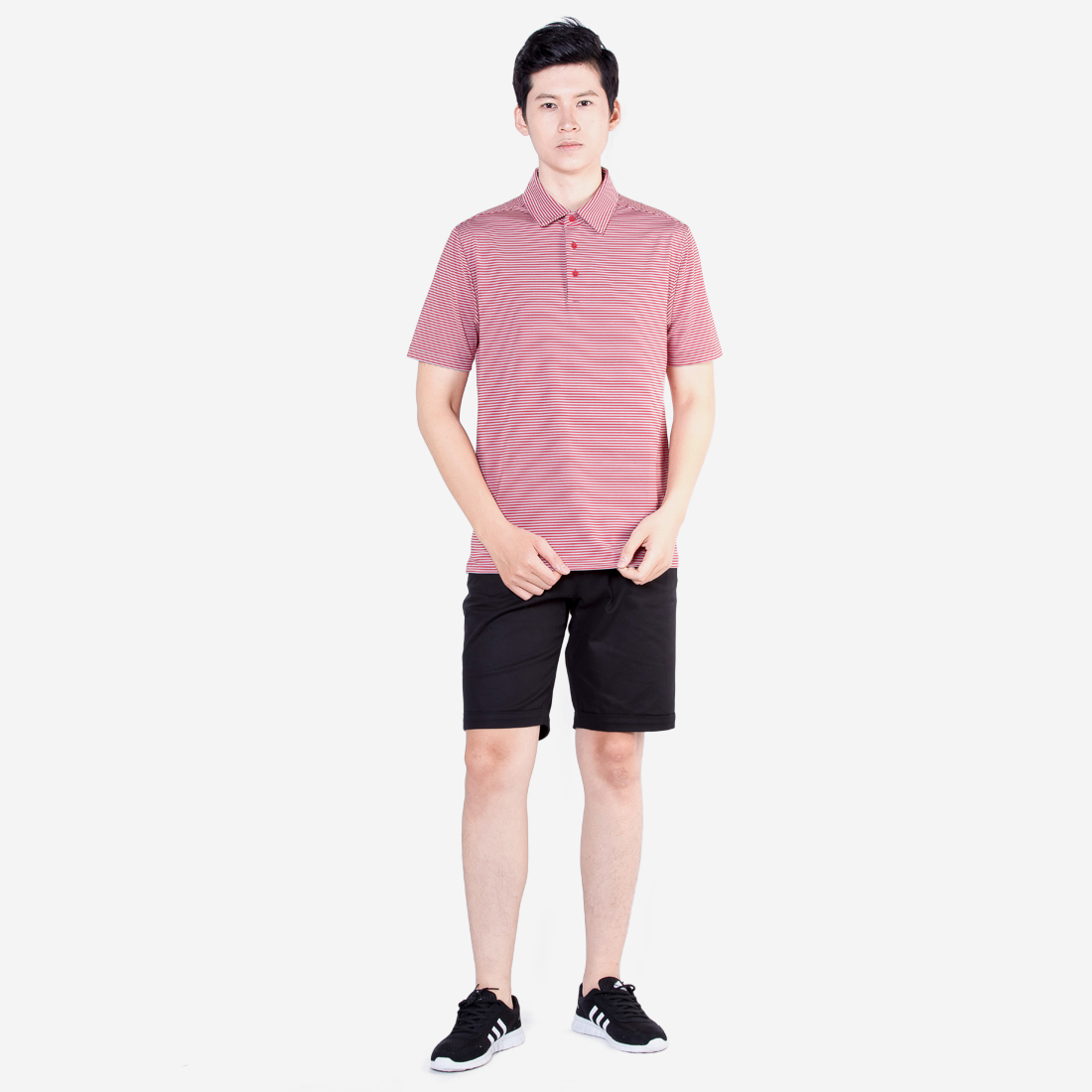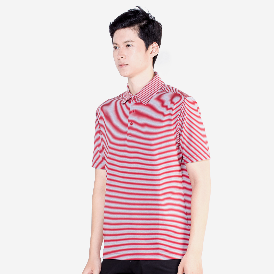 Áo polo nam ngắn tay cao cấp Aligro ALGAPC018 chất liệu vải coolmax form SLIMFIT kẻ ngang màu hồng