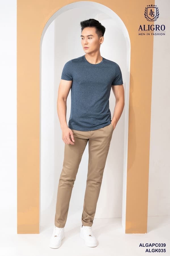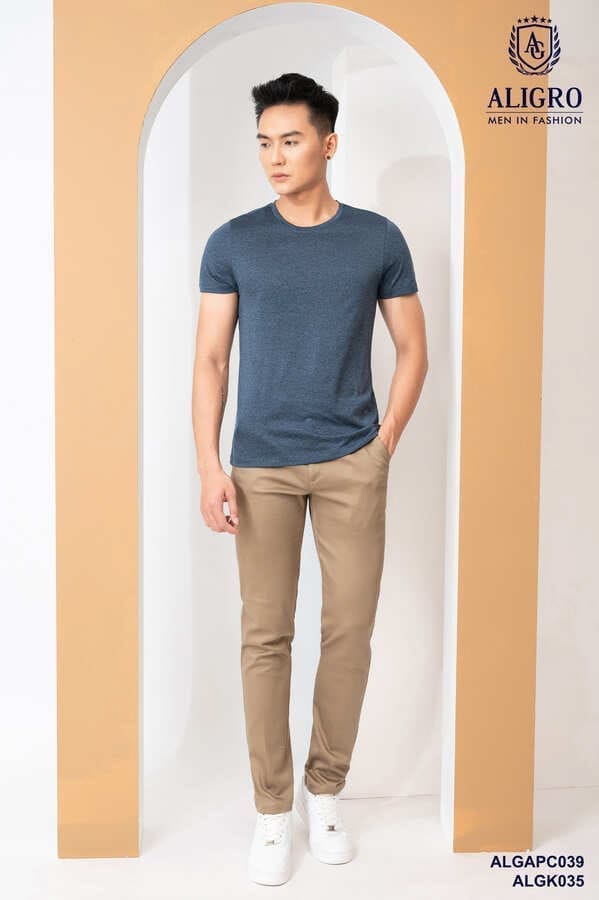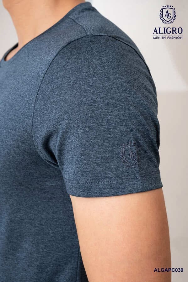 Áo thun nam cổ tròn ngắn tay cao cấp Aligro ALGAPC039 chất liệu cotton form SLIMFIT màu blue