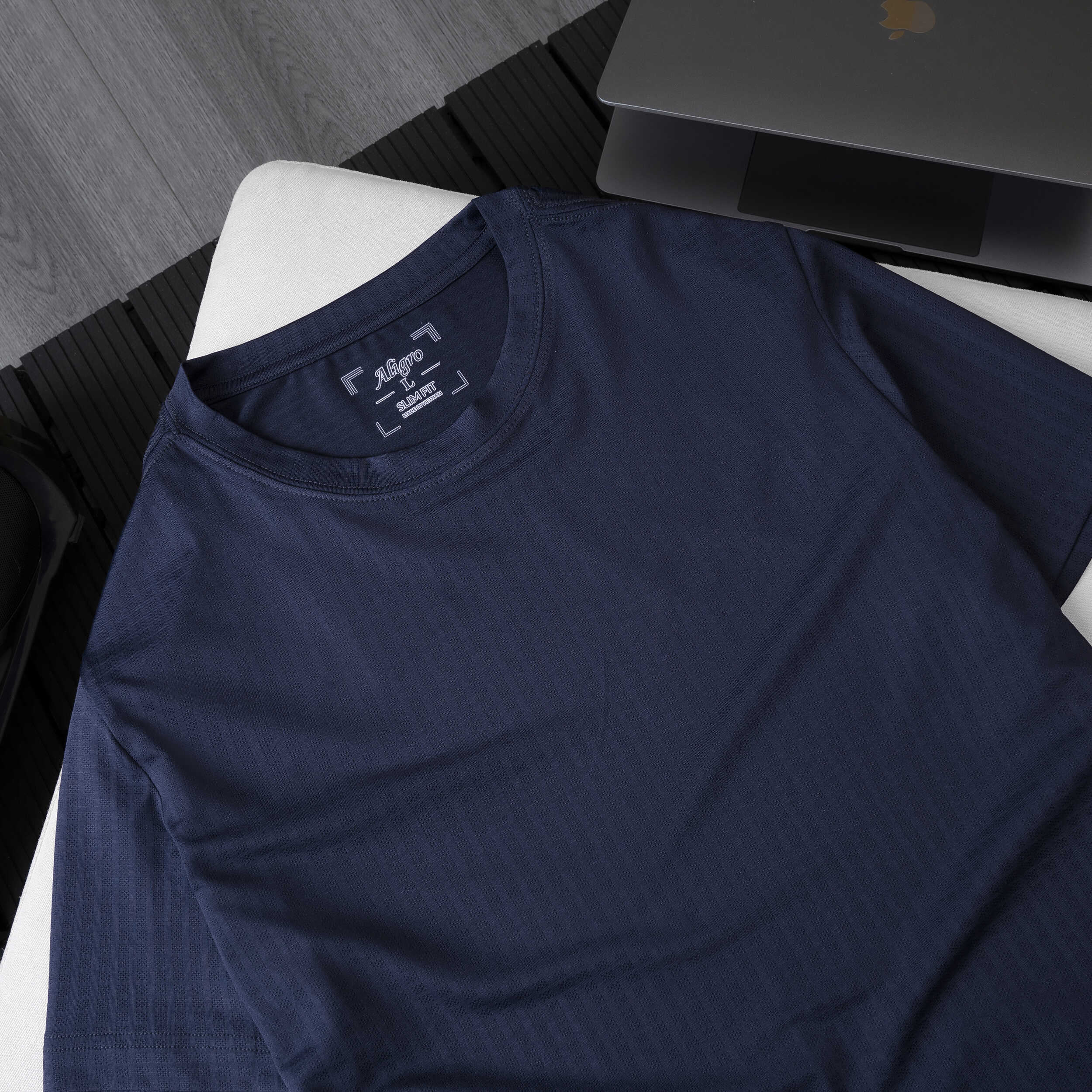 Áo thun nam cổ tròn ngắn tay cao cấp Aligro ALGAPC041 chất liệu cotton form SLIMFIT màu navy