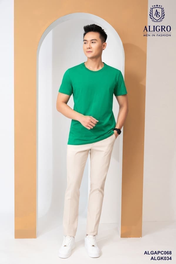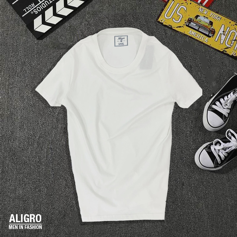 Áo thun nam cổ tròn ngắn tay cao cấp Aligro chất liệu cotton form SLIMFIT