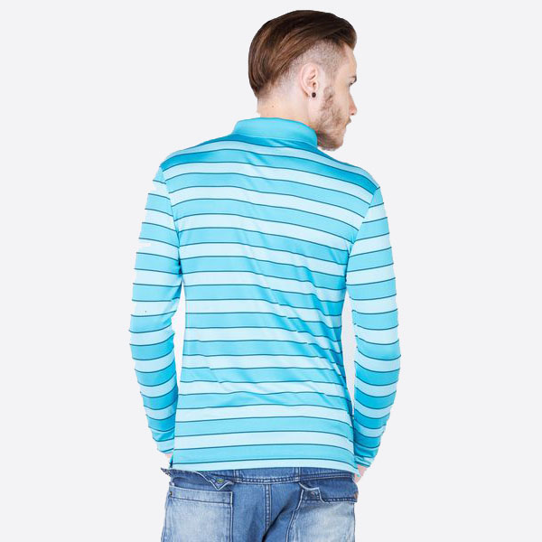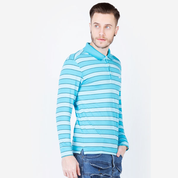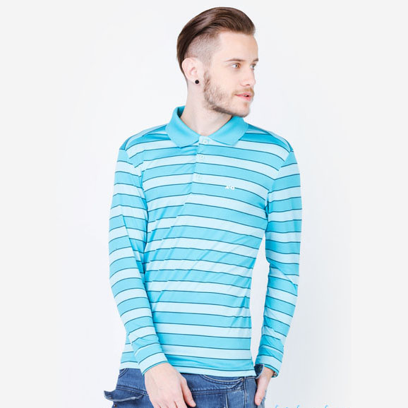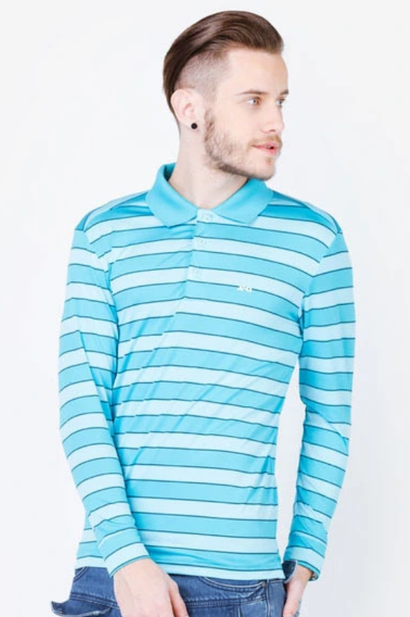 Áo thun dài tay nam cao cấp ALIGRO cổ bẻ co giãn, thoáng khí kẻ phối xanh ALGAPD019