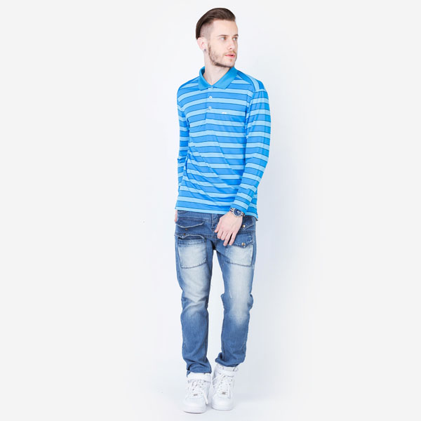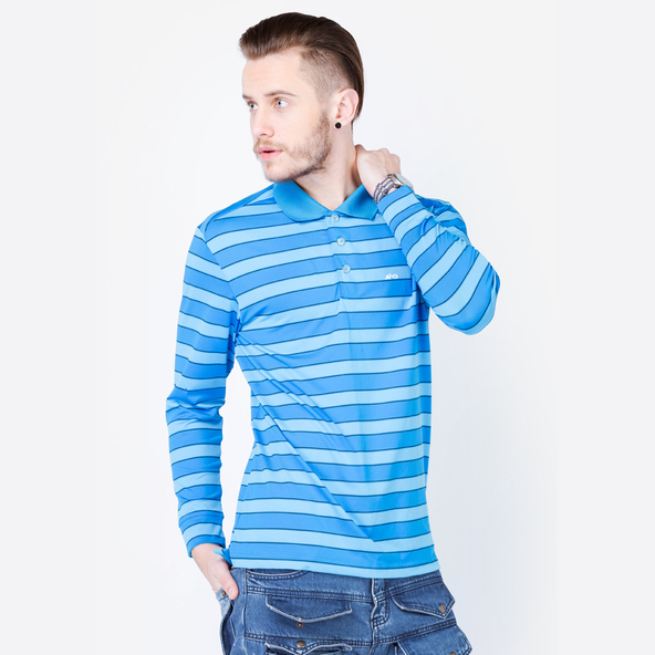 Áo thun dài tay nam cao cấp ALIGRO cổ bẻ co giãn, thoáng khí kẻ xanh dương ALGAPD018
