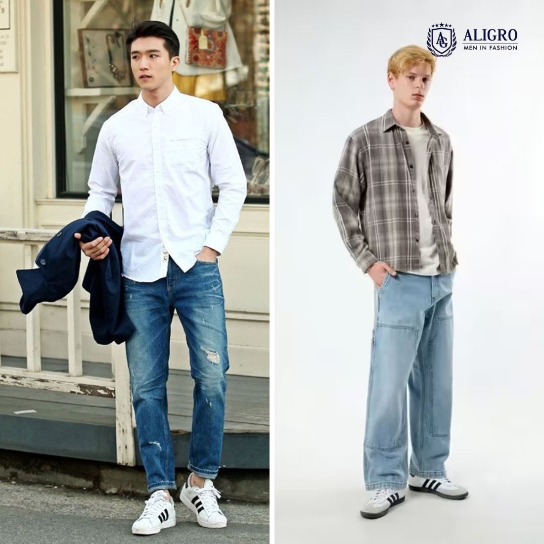 Nếu bạn muốn phong cách thoải mái hơn, quần jeans là lựa chọn rất phù hợp khi phối với áo sơ mi. Sự kết hợp này mang lại vẻ ngoài trẻ trung, năng động nhưng vẫn giữ được sự nam tính.