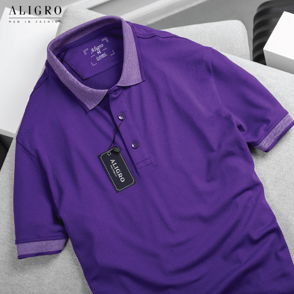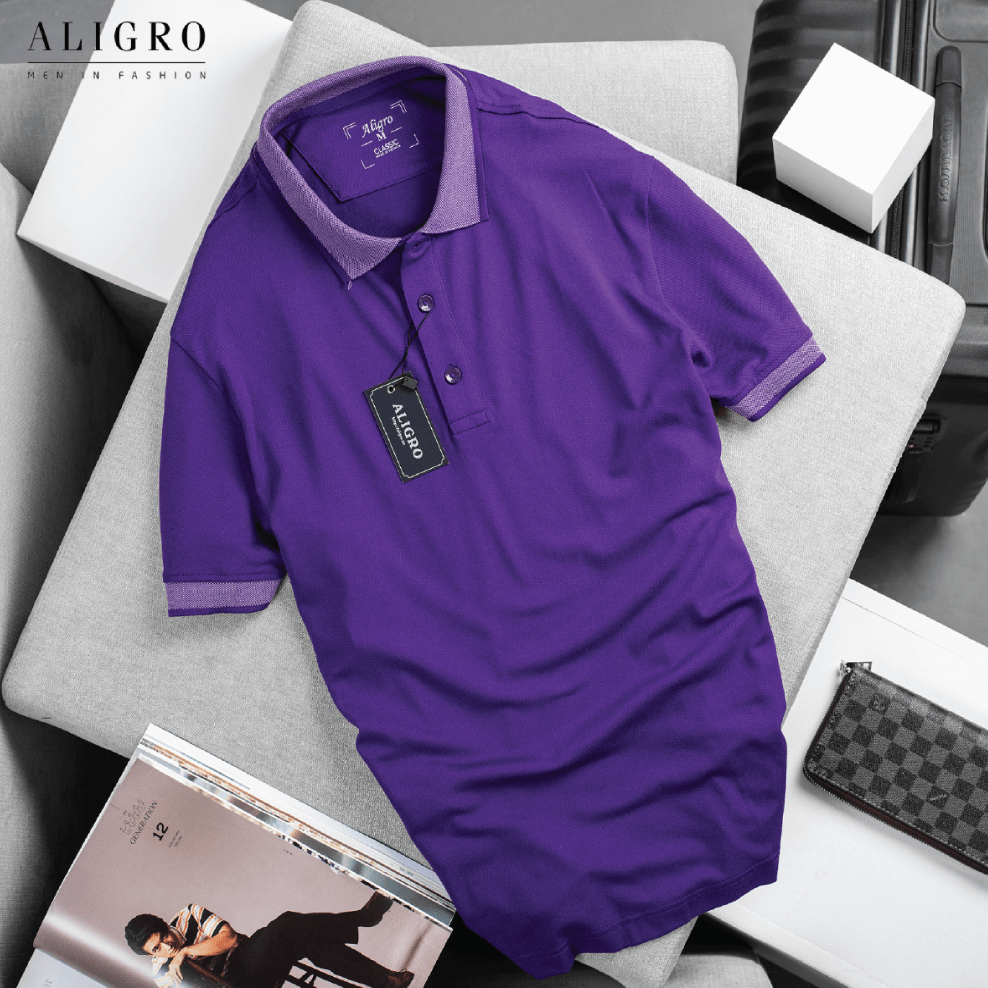 Áo polo nam ngắn tay Aligro cao cấp ALGPLO27 vải cotton pha sợi cacbon dáng suông màu tím – nhẹ, thoáng, chống UV, chuẩn phong cách nam hiện đại.