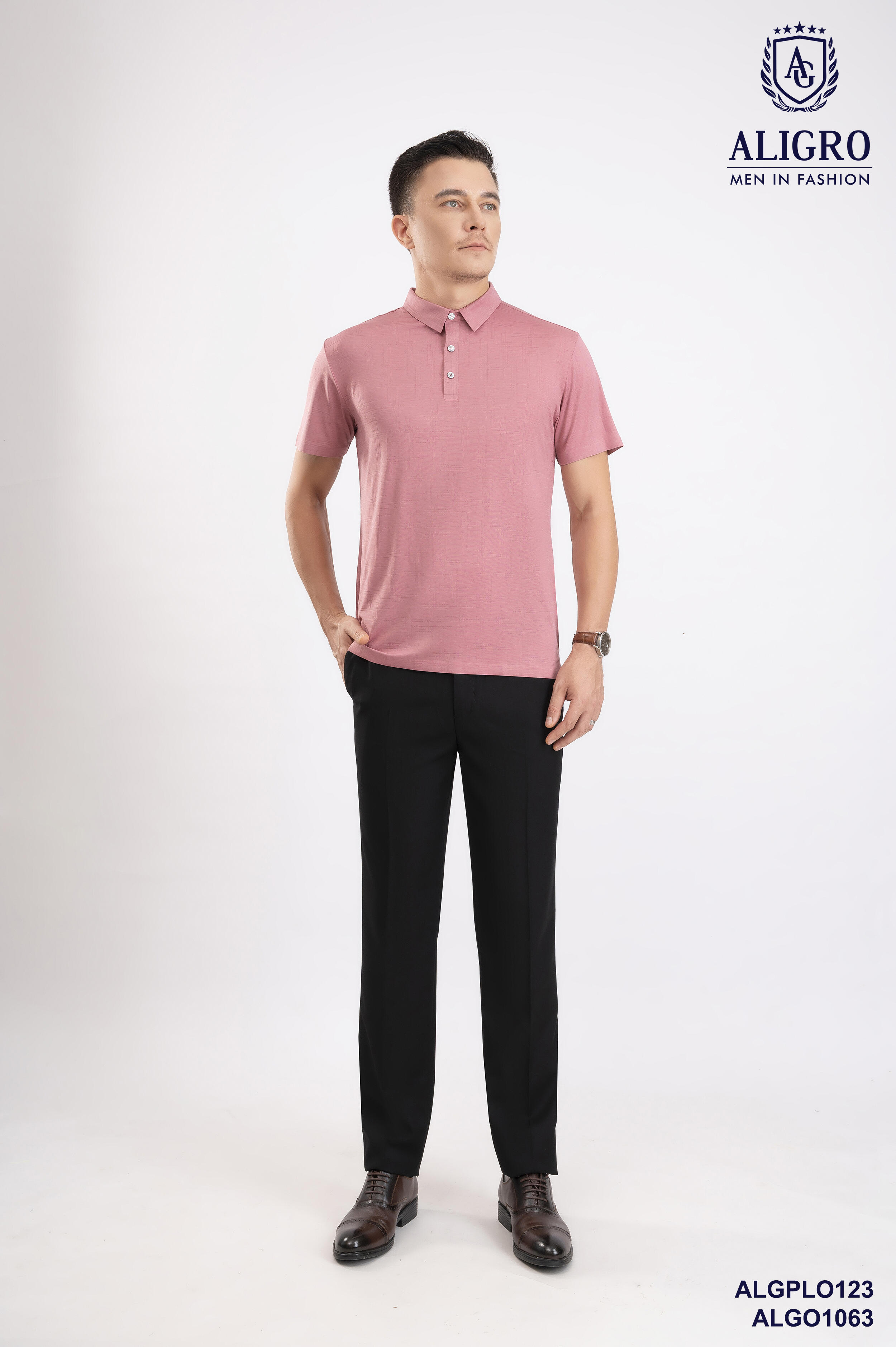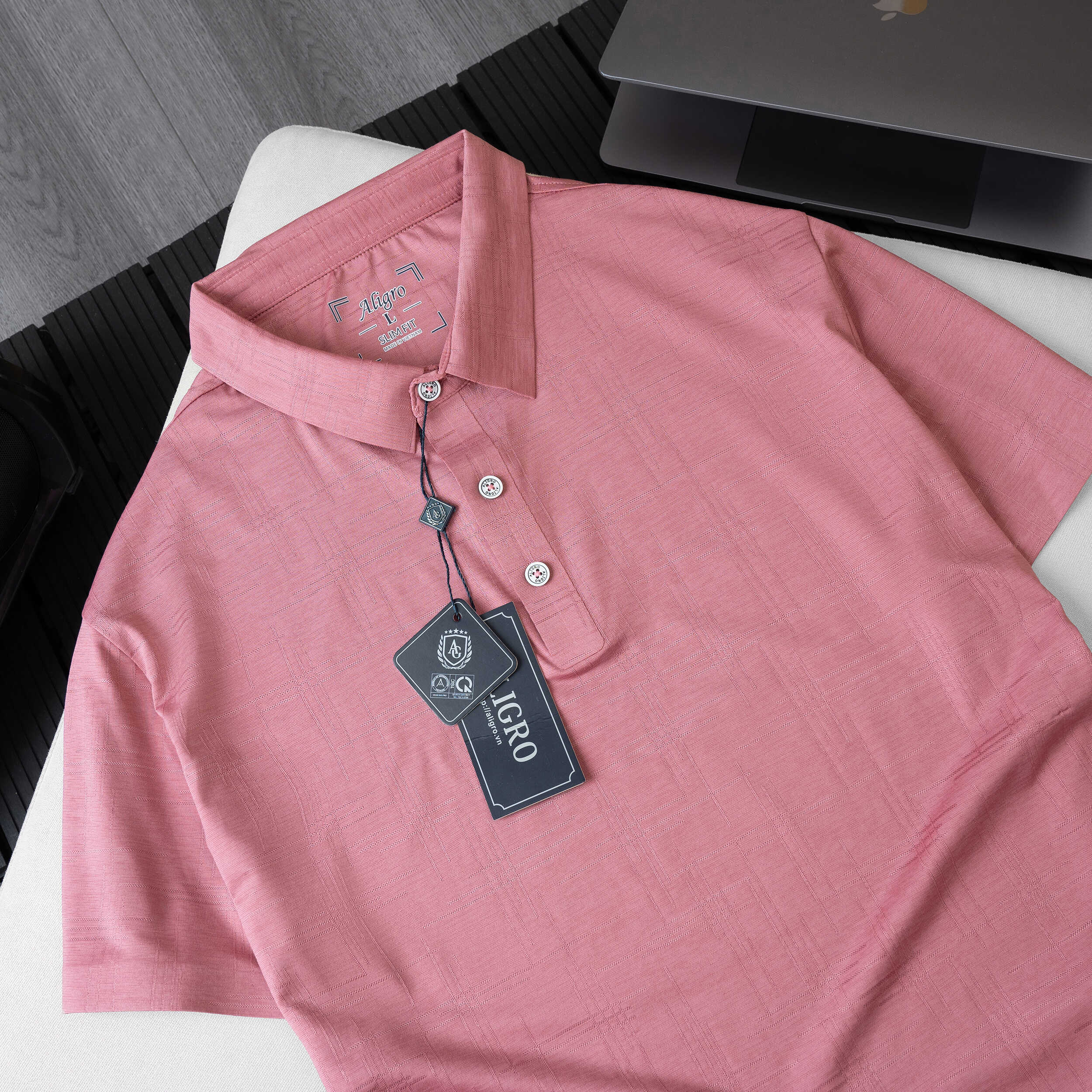 Áo Polo golf cao cấp Aligro ALGPLO123 công nghệ Seamless - không đường may form SLIMFIT màu vỏ đỗ dệt line phảy
