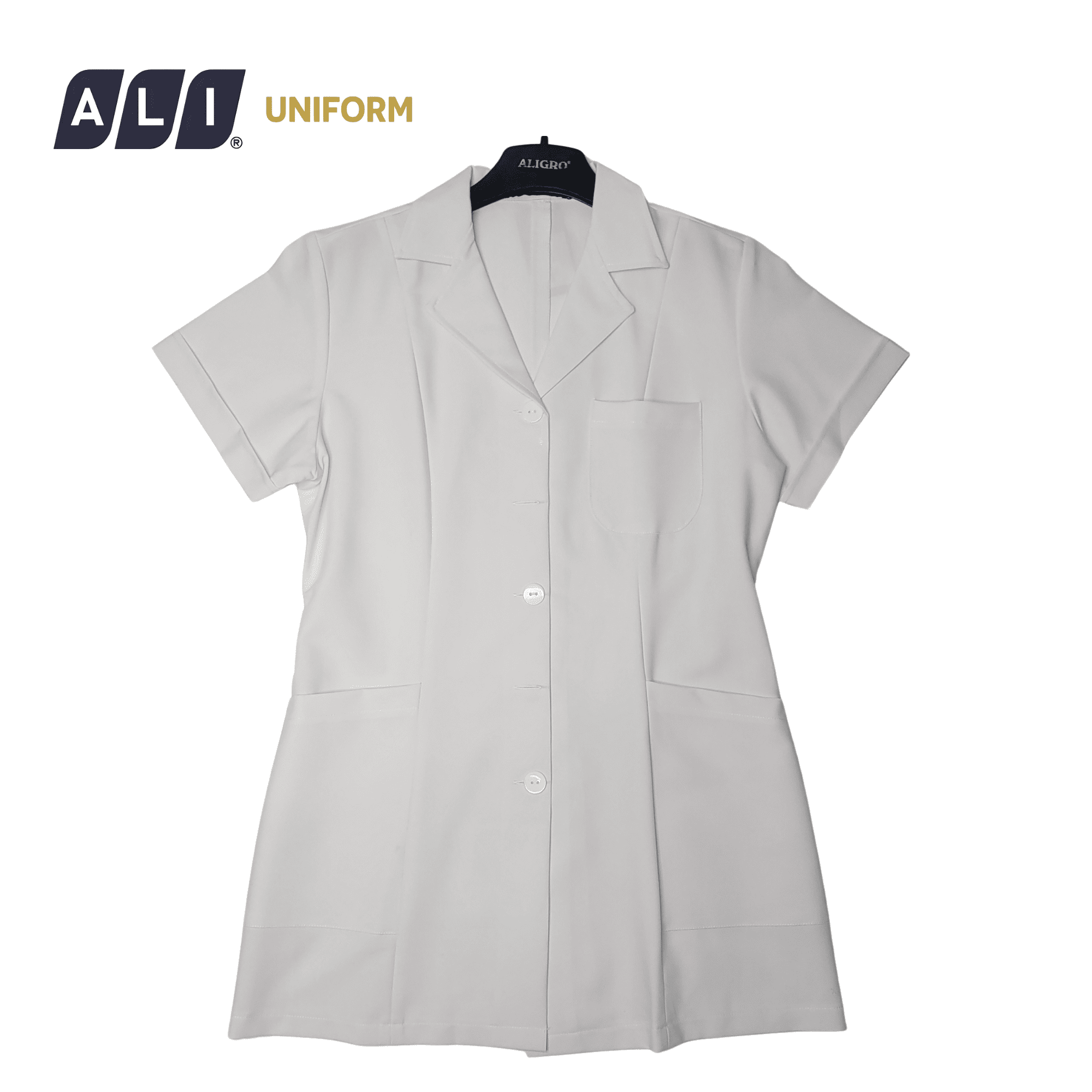 Áo điều dưỡng, áo blue trắng cộc tay, không lé chất vải kaki chun hàn cho bác sĩ, dược sĩ, spa Aligro BV.CA.ADD.KK.C1