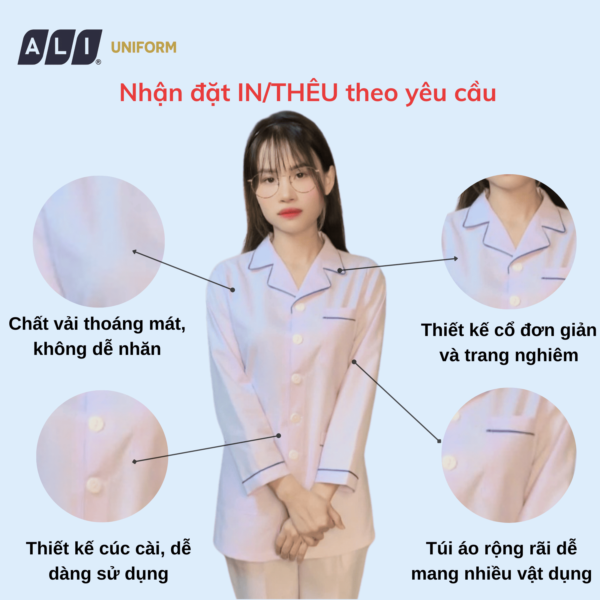 Bạn đang tìm kiếm một chiếc áo blouse, áo bác sĩ, đồng phục y tế vừa thoải mái, thoáng mát, vừa đảm bảo vệ sinh và chuyên nghiệp? Áo Blouse của Aligro chính là giải pháp hoàn hảo. Với chất liệu vải lon cao cấp, thiết kế thông minh và dịch vụ in thêu theo yêu cầu, chúng tôi cam kết mang đến sự hài lòng tuyệt đối cho khách hàng.