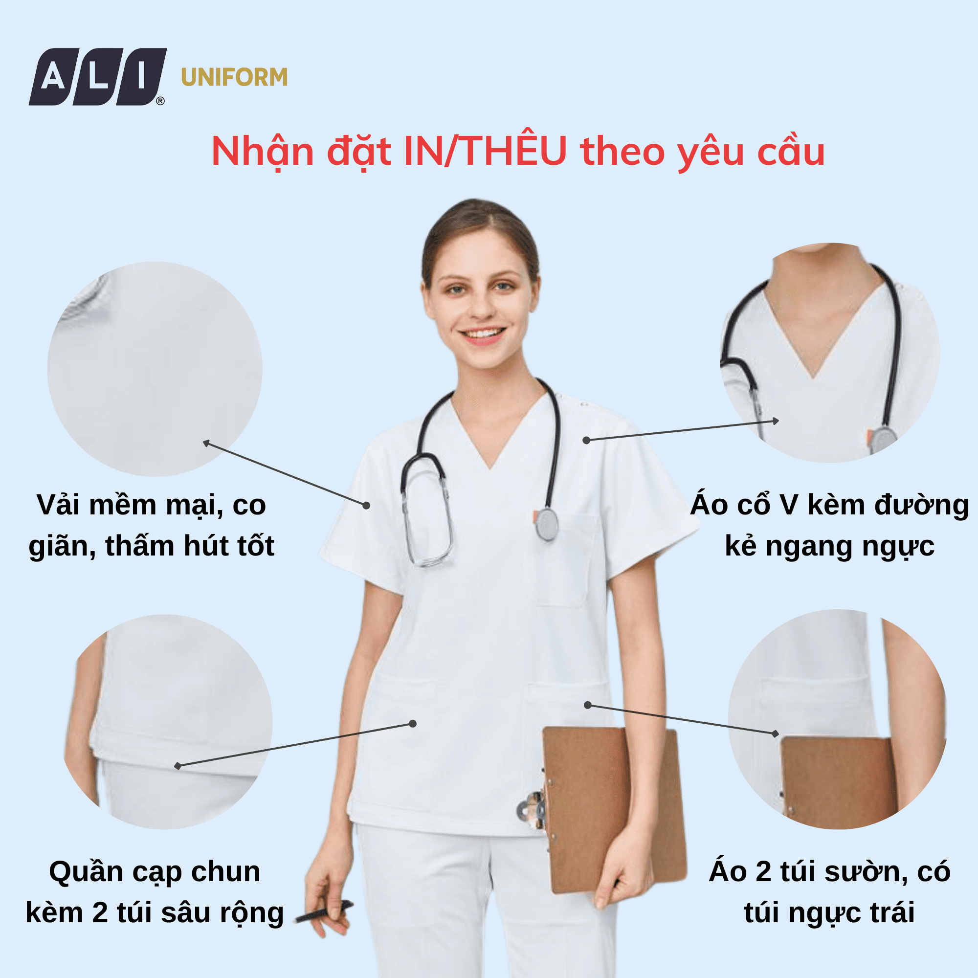 - Ứng dụng: Phù hợp cho nhân viên làm việc trong bệnh viện, cơ sở y tế.