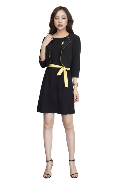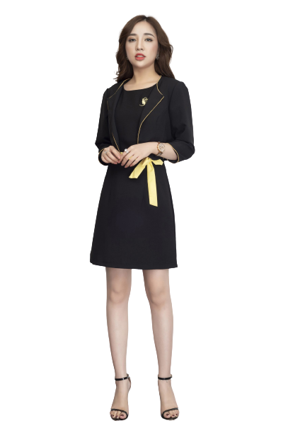 Đồng phục Aligro giới thiệu đến Quý khách hàng mẫu đồng phục spa màu đen đẹp dành cho nhân viên nữ spa. Mẫu đồng phục váy liền thân trẻ trung, thanh lịch, hiện đại. Phần phối lé tinh tế, tạo vẻ đẹp sang trọng.