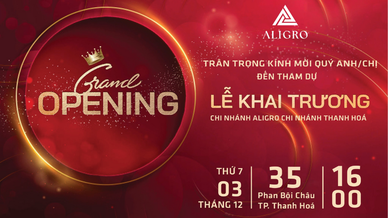 - Aligro trân trọng kính mời Quý khách tham dự vào đại tiệc khai trương cơ sở mới của công ty.