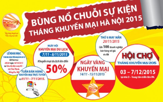 Đặc biệt Tháng khuyến mại năm 2015 sẽ thu hút các DN bán lẻ có hệ thống phân phối rộng lớn tại các huyện ngoại thành Hà Nội từ đó tổ chức 20 - 30% các điểm khuyến mại tại khu vực ngoại thành Hà Nội. Trong suốt tháng 11 (từ ngày 01 đến 30/11), người tiêu dùng có thể mua sắm khuyến mại tại gần 1.000 Điểm khuyến mại trên toàn địa bàn thủ đô với mức giảm giá từ 10 - 30%...