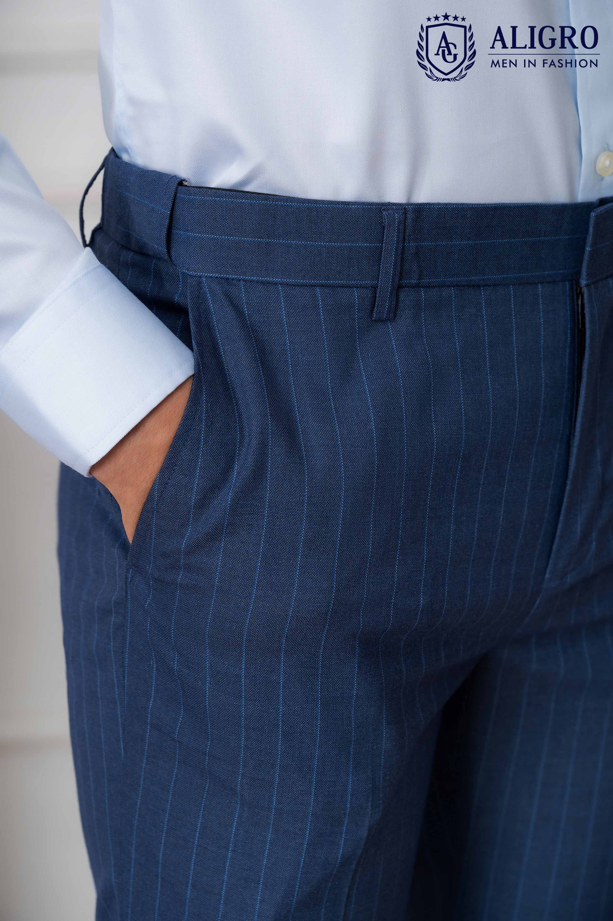 Quần âu nam công sở cao cấp Aligro ALGO1056 màu xanh sáng kẻ dọc