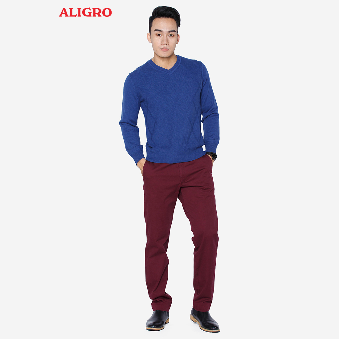 Quần kaki nam cao cấp Aligro ALGK015 dáng slimfit co giãn 4 chiều màu đỏ đô