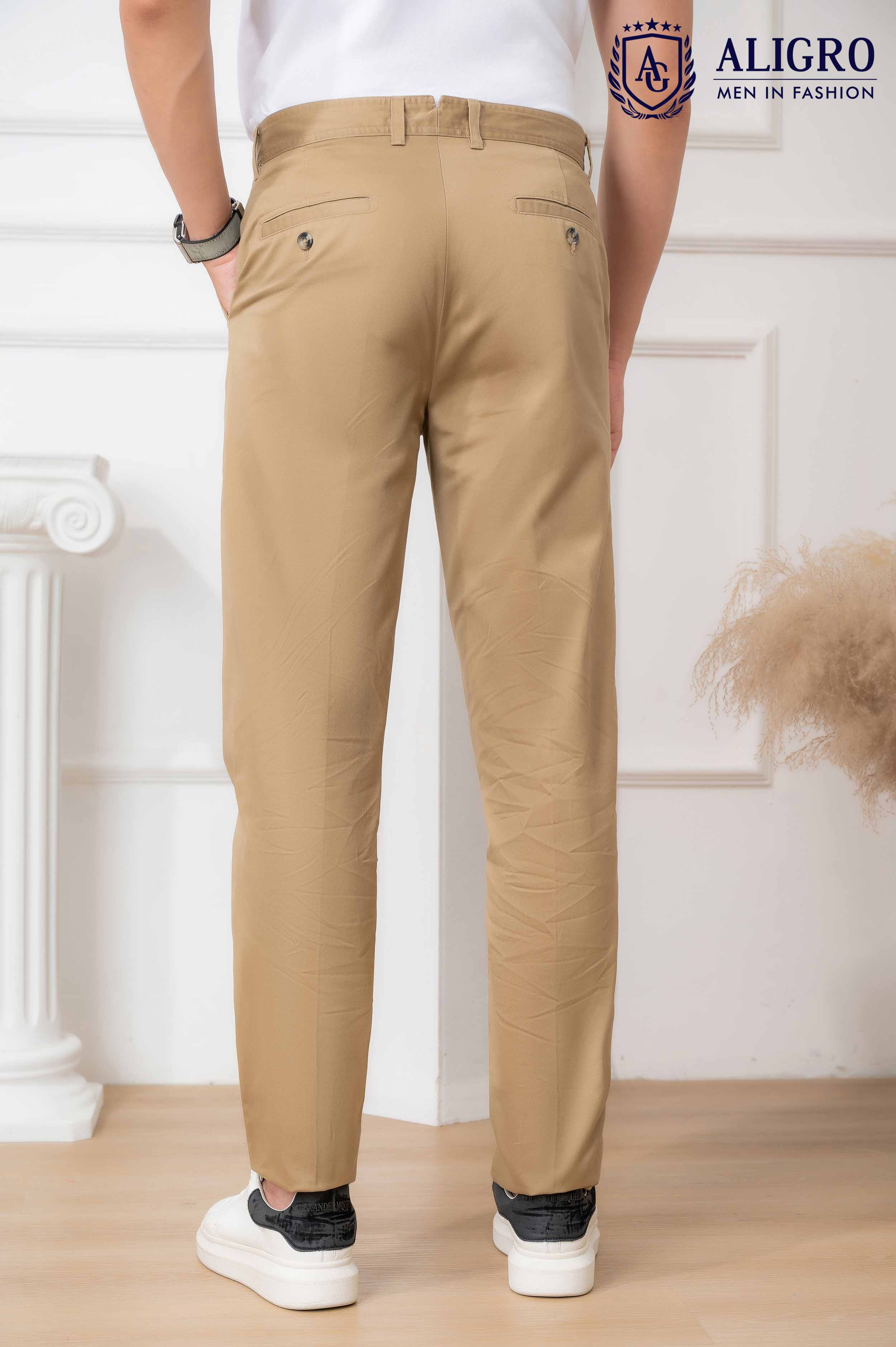 Với quần kaki nam màu be ALIGRO, người mặc dễ dàng xây dựng hình ảnh chuyên nghiệp mà vẫn trẻ trung, hiện đại.