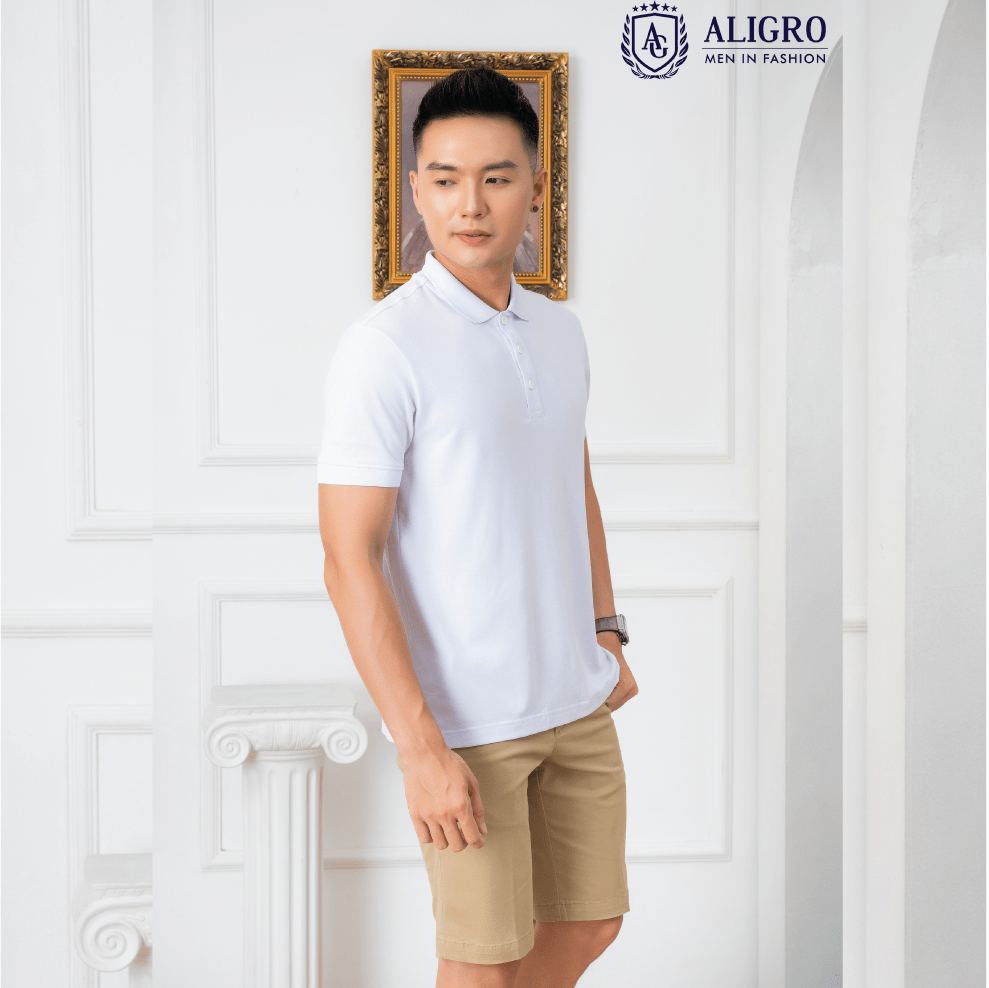Áo thun nam cổ tròn ngắn tay cao cấp Aligro ALGAPC037 chất liệu cotton form SLIMFIT màu trắng