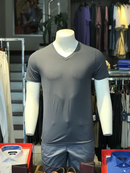 Áo thun nam cổ tim ngắn tay cao cấp Aligro ALGAPC055 chất liệu cotton form SLIMFIT màu grey