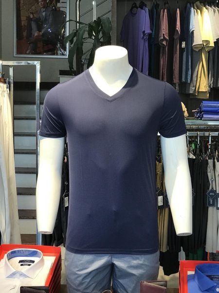 Áo thun nam cổ tim ngắn tay cao cấp Aligro ALGAPC057 chất liệu cotton form SLIMFIT màu navy