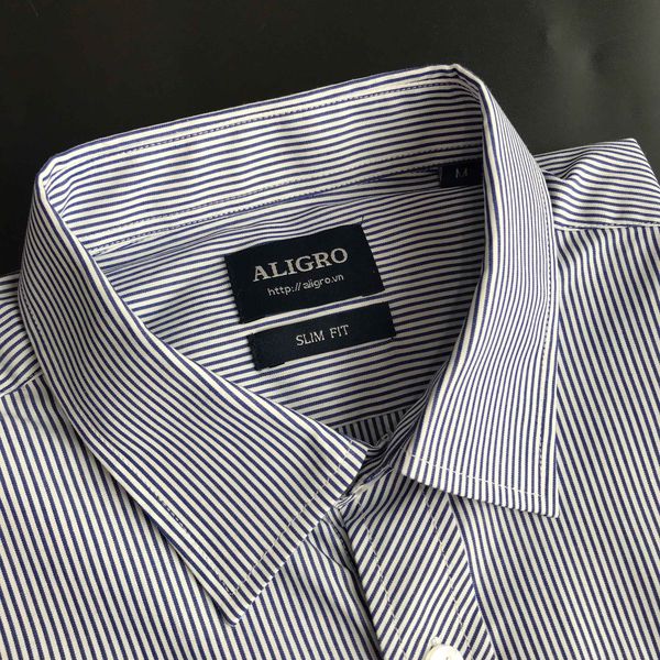 Áo sơ mi nam ngắn tay cao cấp Aligro ALGS-C62 vải cotton form SLIMFIT kẻ sọc màu xanh