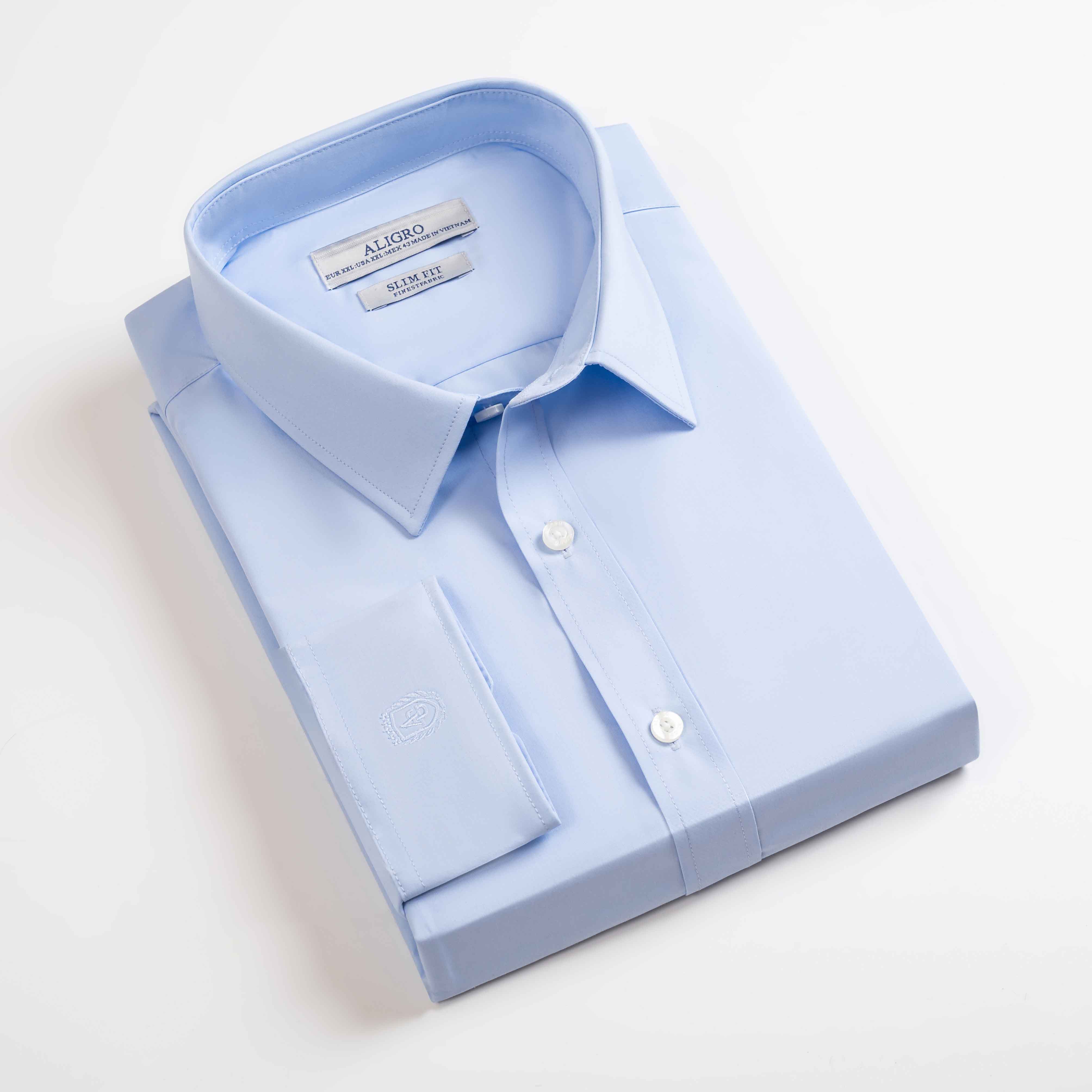 Áo sơ mi nam dài tay cao cấp Aligro ALGS222 chất liệu vải modal form SLIMFIT màu xanh hoà bình