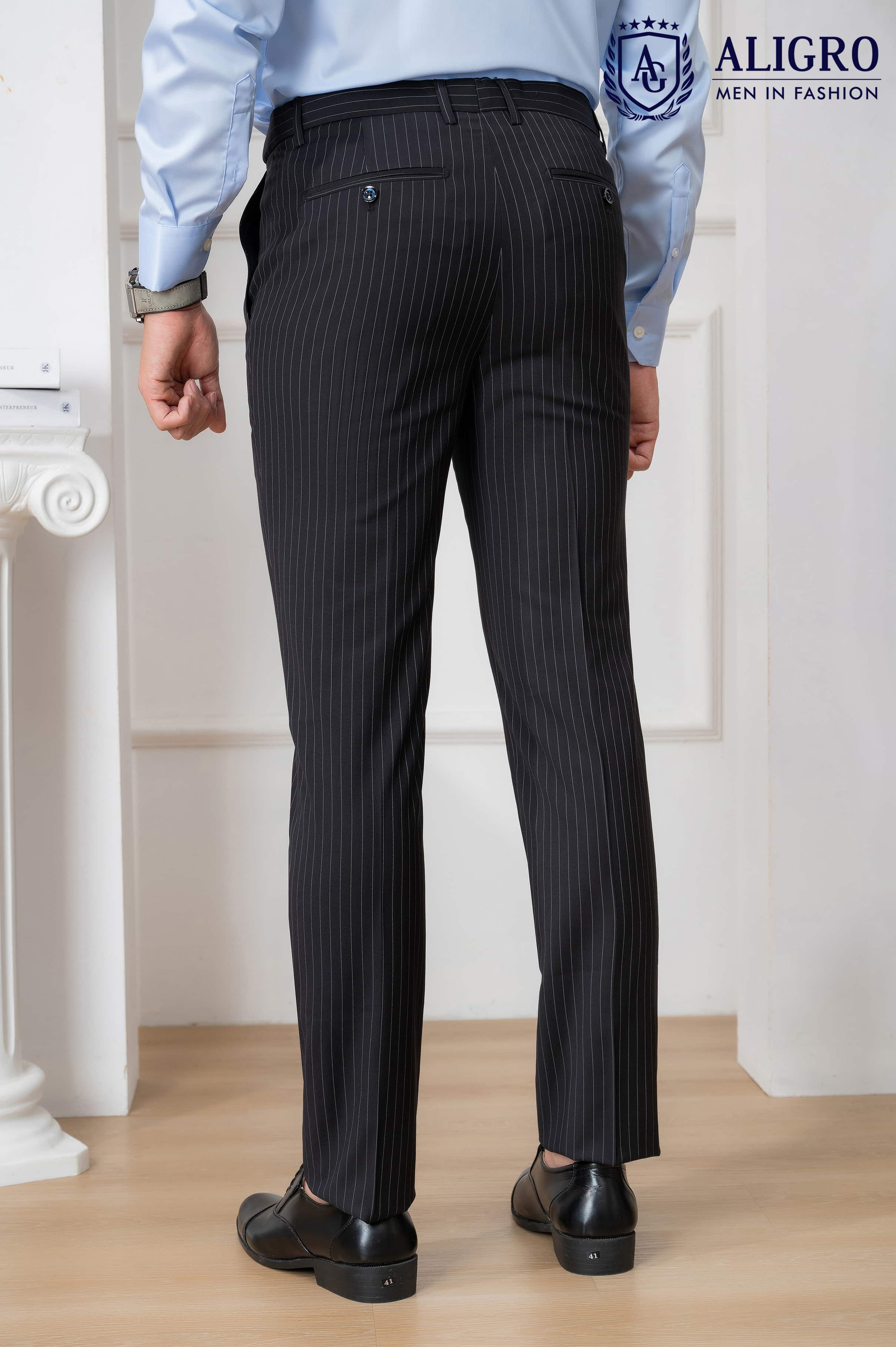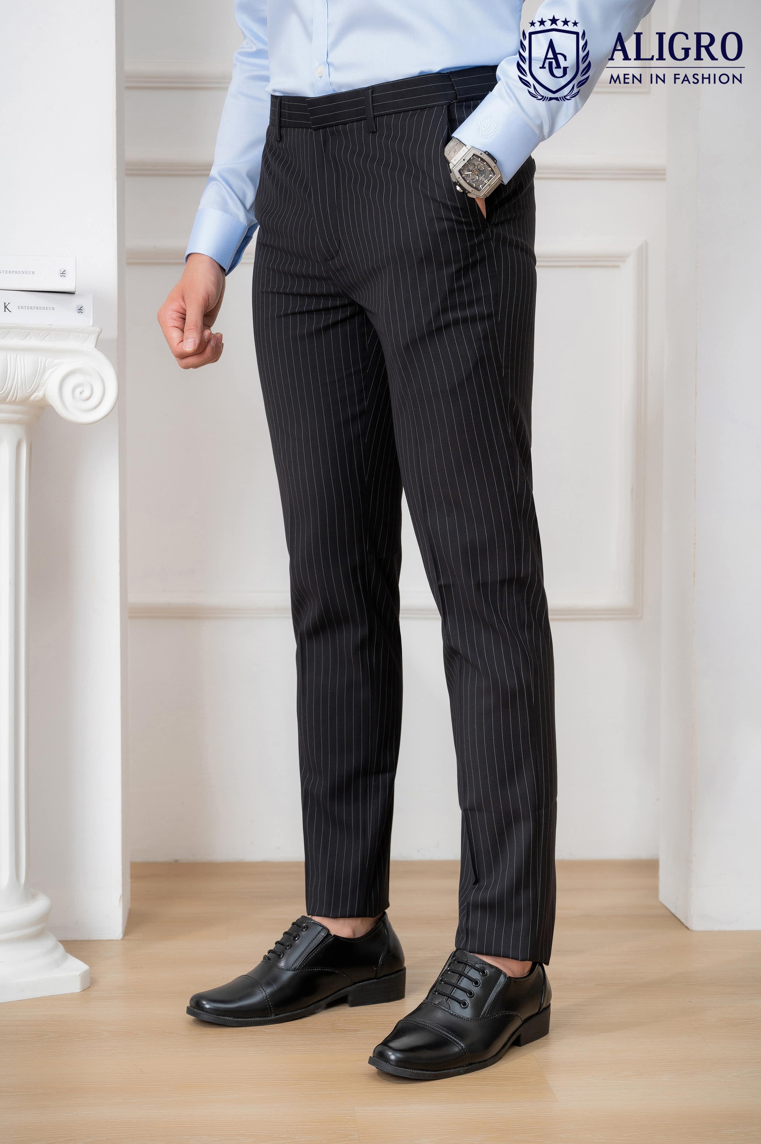 Quần âu nam công sở cao cấp Aligro ALGO1049 màu đen kẻ sọc trắng